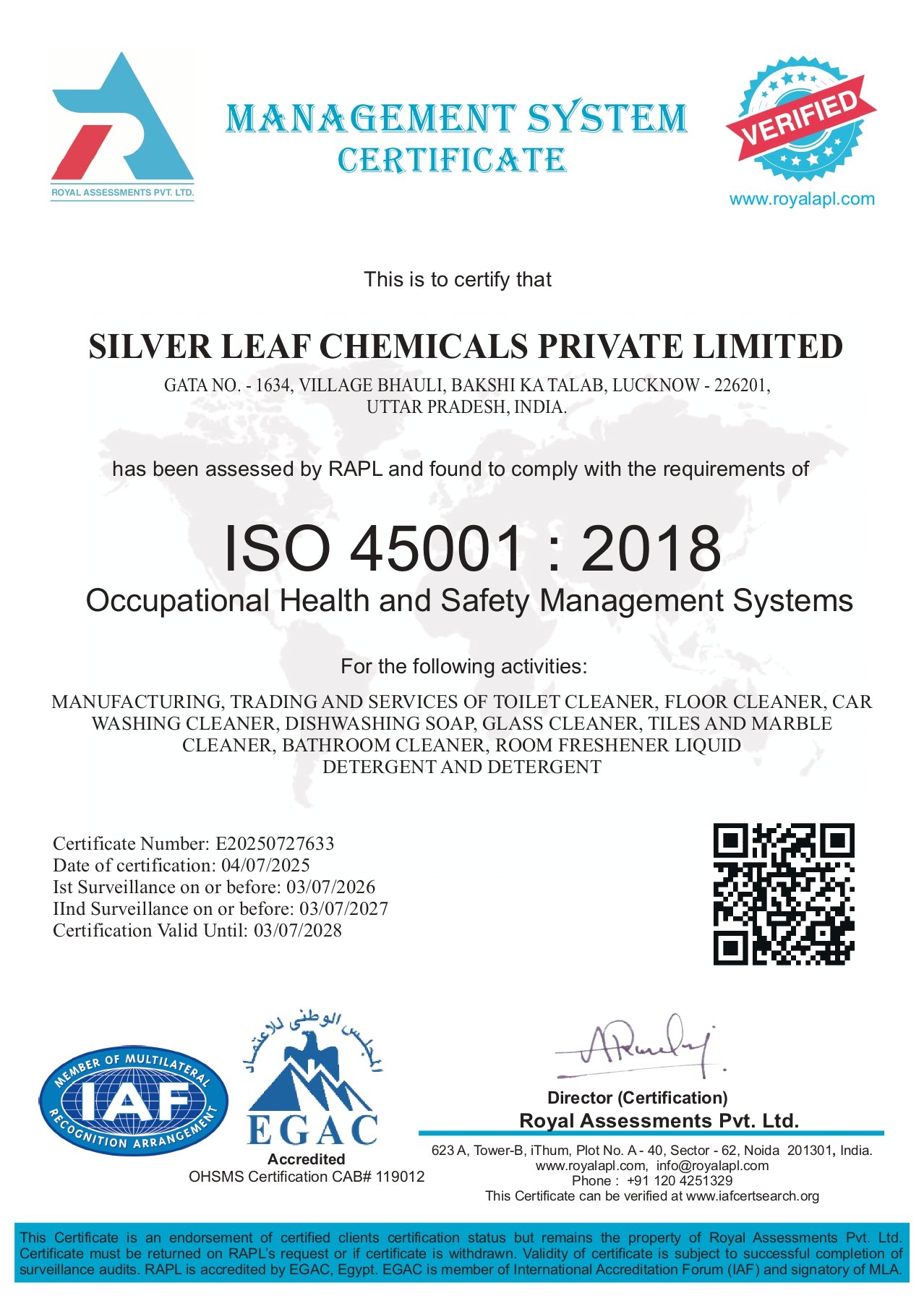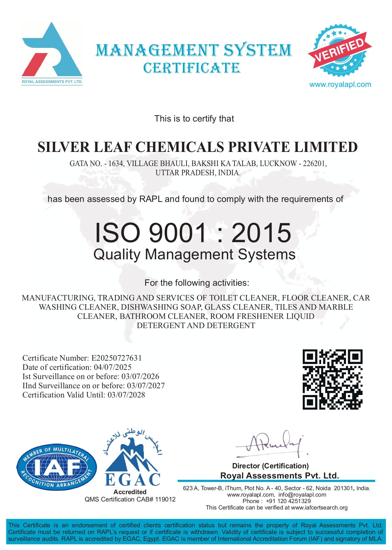 Quality management certification Approved & Verified.