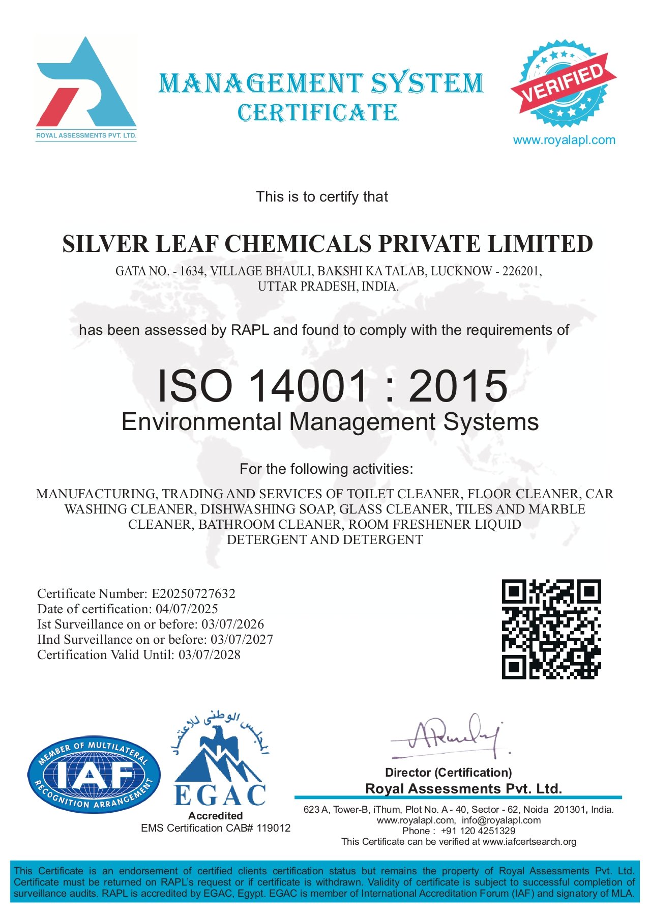 Quality management certification Approved & Verified.