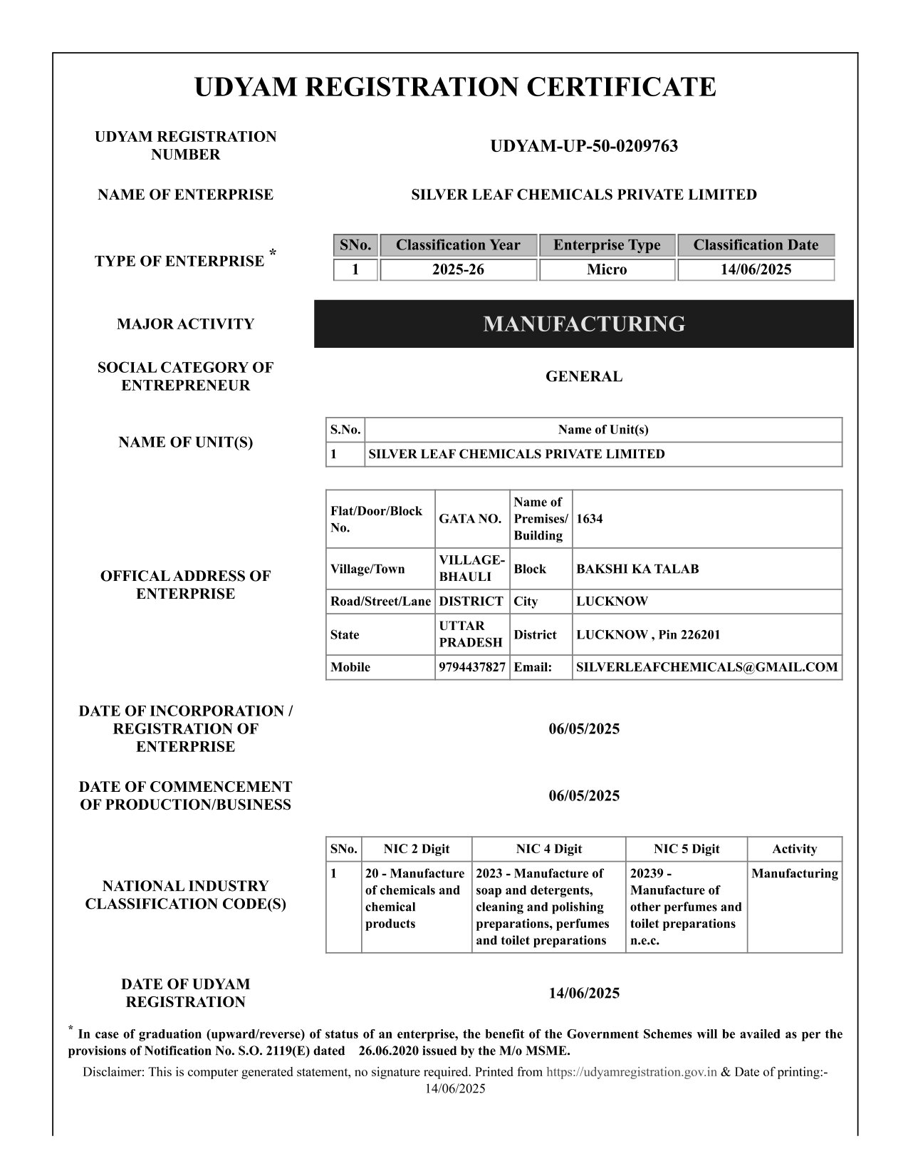 Registered Under UP Shops & Establishment Act, 1962